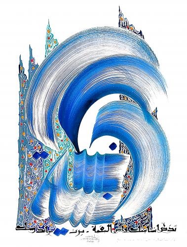 2002 Participated in the exhibitions of the François Villon Cultural Center, Enghien Les Bains, France, the Gallery Hunar, Dubai, UAE, the exhibition of François Mauriac Cultural Hall, Sevran, France, the Gallery ‘Atelier Gustave’, Paris, and the Youth and Culture House exhibition, Colombes, France. He wrote a book entitled ‘Perfect Harmony: Sufi Poetry by Ibn Arabi: The Calligraphy by Hassan Massoudy’, published in both Arabic and English.