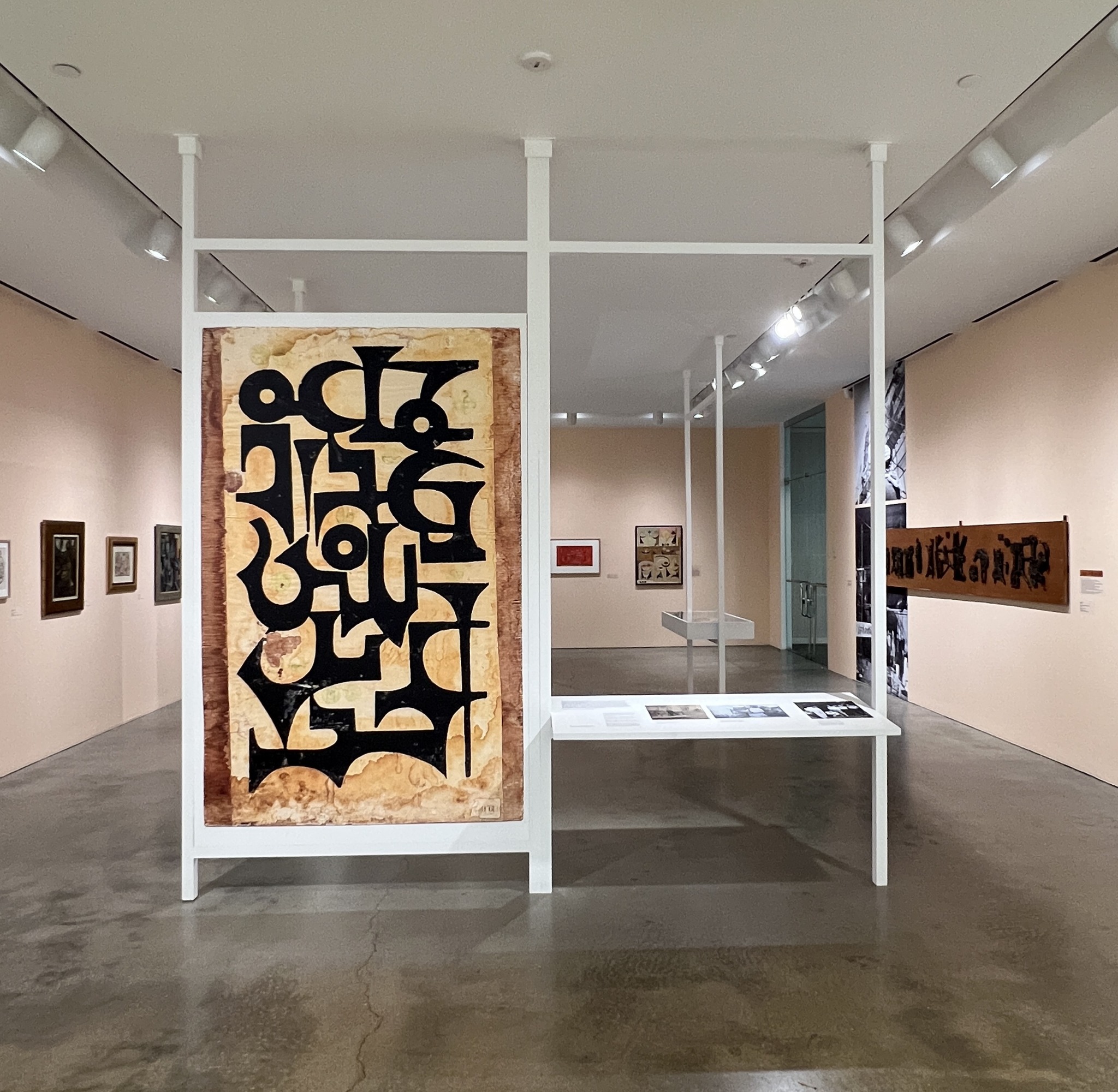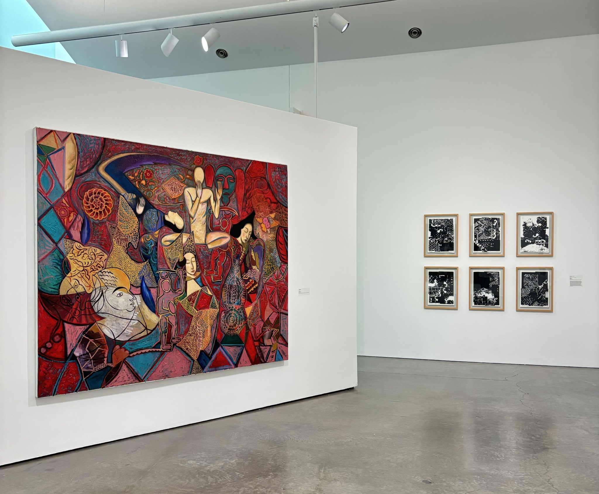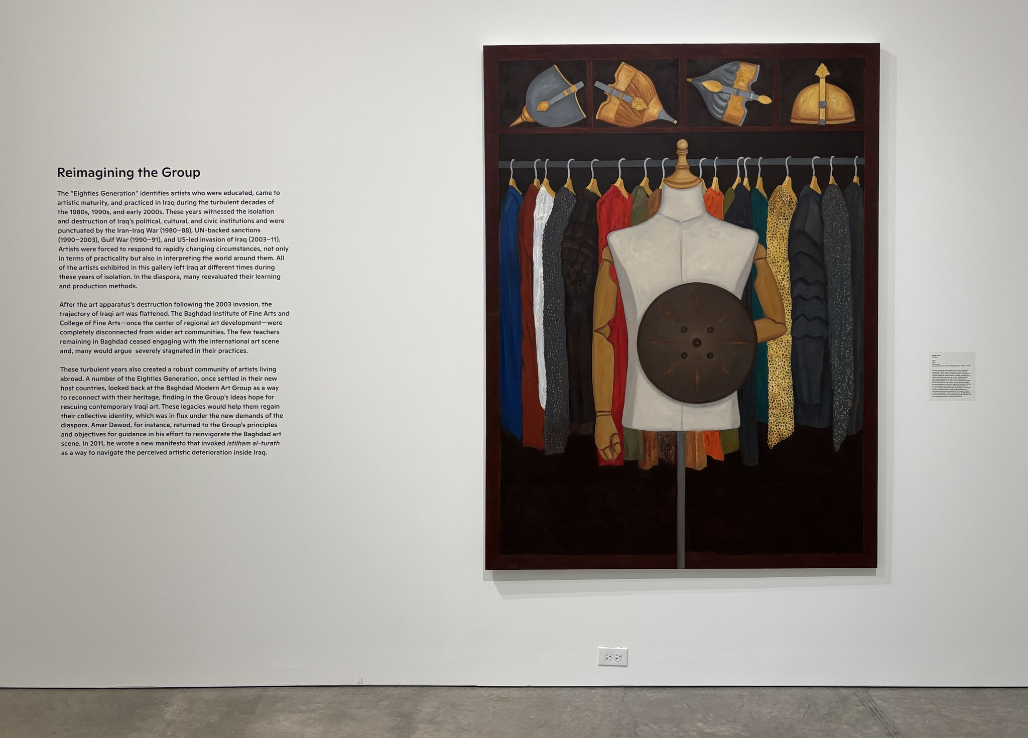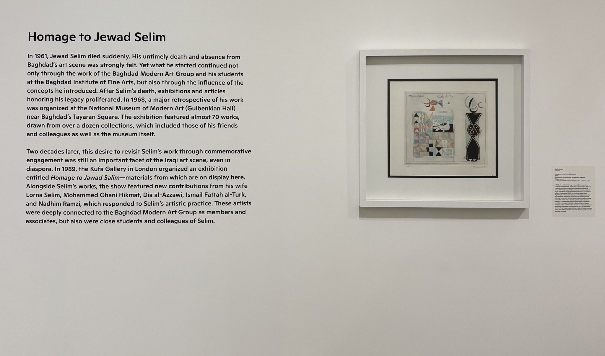 Curated by Dr. Nada Shabout, Tiffany Floyd, and Lauren Cornell, the exhibition includes loaned artworks by members of the group, such as Shakir Hassan Al-Said and Mohammad Ghani Hikmat, as well as works by artists inspired by the Baghdad Group’s vision, like Dia al-Azzawi and Hanaa Malallah.