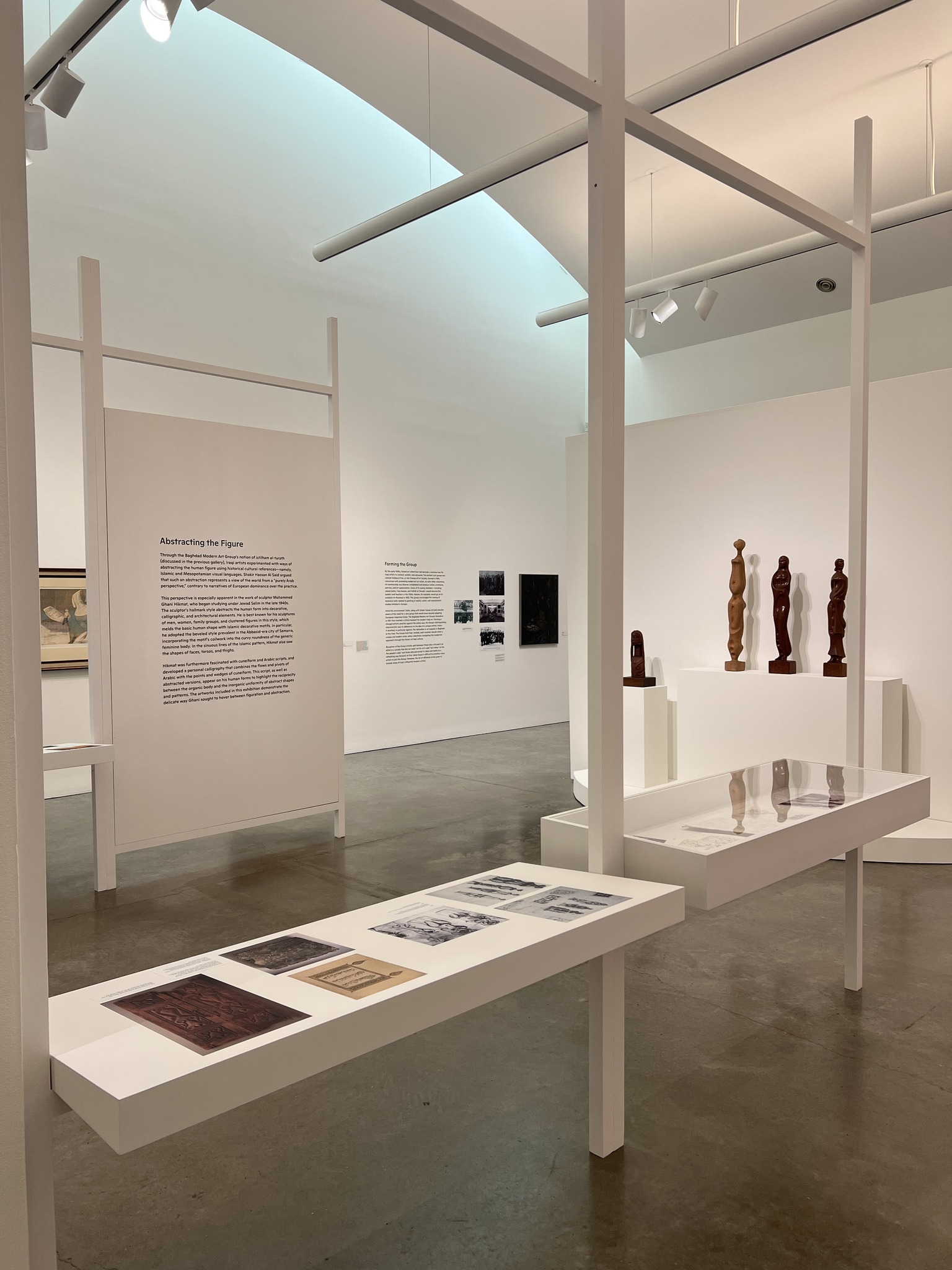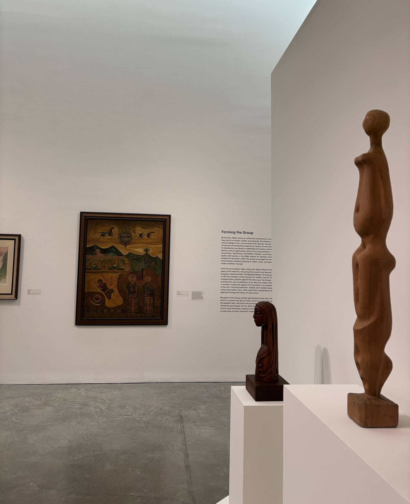 This exhibition highlights the history and influence of the Baghdad Modern Art Group, focusing on its development and the relationships among founders like Jewad Selim and Shakir Hassan Al-Said, along with their students. It features contributions from lesser-known members and showcases significant works from 1946 to 2023, including paintings, sculptures, rare architectural plans, and archival materials.